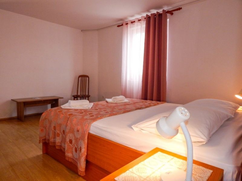 Apartman Jelena AP1, kapaciteta 4 osobe opremljen je s jednim bračnim krevetom i dva pomoćna ležaja. Apartman je kategorije tri (3***) zvjezdice i nalazi se na 3. katu smještajnog objekta. Apartman je klimatiziran, te posjeduje digitalni televizijski prijemnik i besplatni WIFI pristup internetu. Za sve naše goste osiguran je besplatan parking. Zbog blizine mora, idealna smo lokacija za obitelji s djecom i sve one koji žele miran i potpuni odmor. Apartman je udaljen od centra grada Paga svega 10tak minuta ugodne šetnje uz morsku obalu. U blizini apartmana nalazi se restoran s bogatim ribljim, mesnim i vegetarijanskim jelovnikom.
