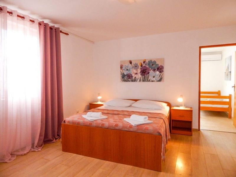 Apartman Jelena AP1, kapaciteta 4 osobe opremljen je s jednim bračnim krevetom i dva pomoćna ležaja. Apartman je kategorije tri (3***) zvjezdice i nalazi se na 3. katu smještajnog objekta. Apartman je klimatiziran, te posjeduje digitalni televizijski prijemnik i besplatni WIFI pristup internetu. Za sve naše goste osiguran je besplatan parking. Zbog blizine mora, idealna smo lokacija za obitelji s djecom i sve one koji žele miran i potpuni odmor. Apartman je udaljen od centra grada Paga svega 10tak minuta ugodne šetnje uz morsku obalu. U blizini apartmana nalazi se restoran s bogatim ribljim, mesnim i vegetarijanskim jelovnikom.